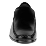 The men's black slip-on shoe smart and stylish design with the classic heel. The cushioned collar provides comfort and the addition of the gusset tab adds support that allows your feet to stay locked into the shoe which makes it the perfect work shoe.